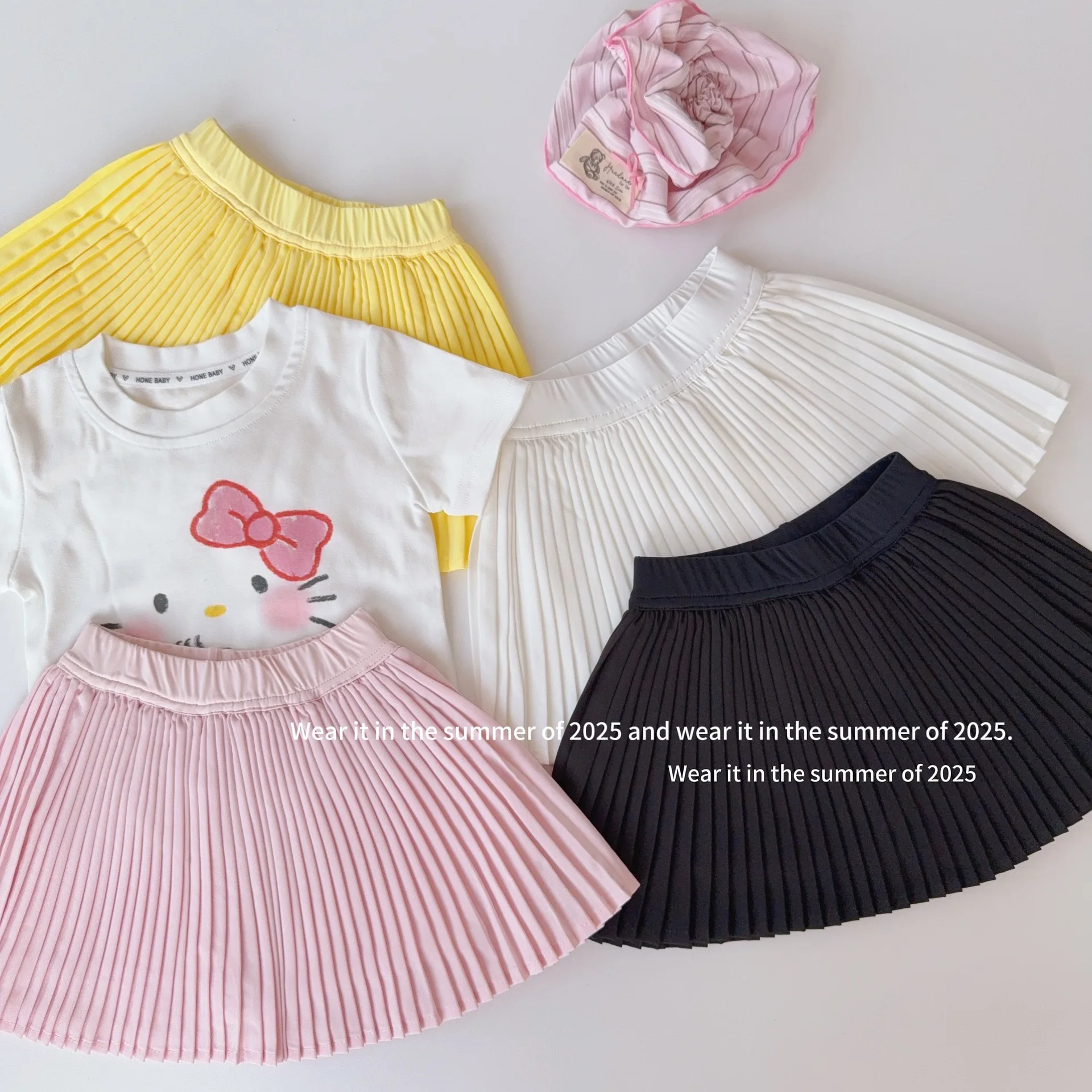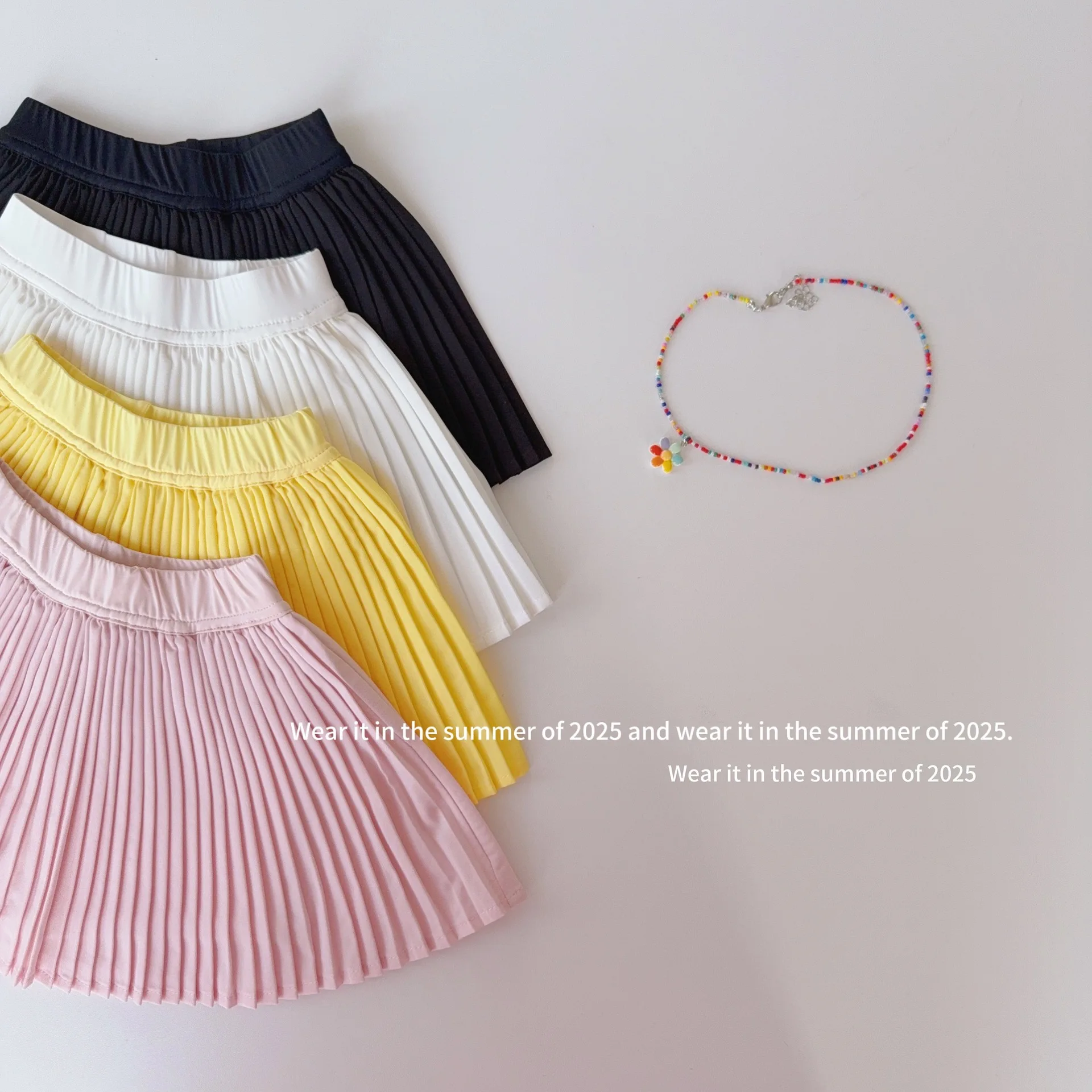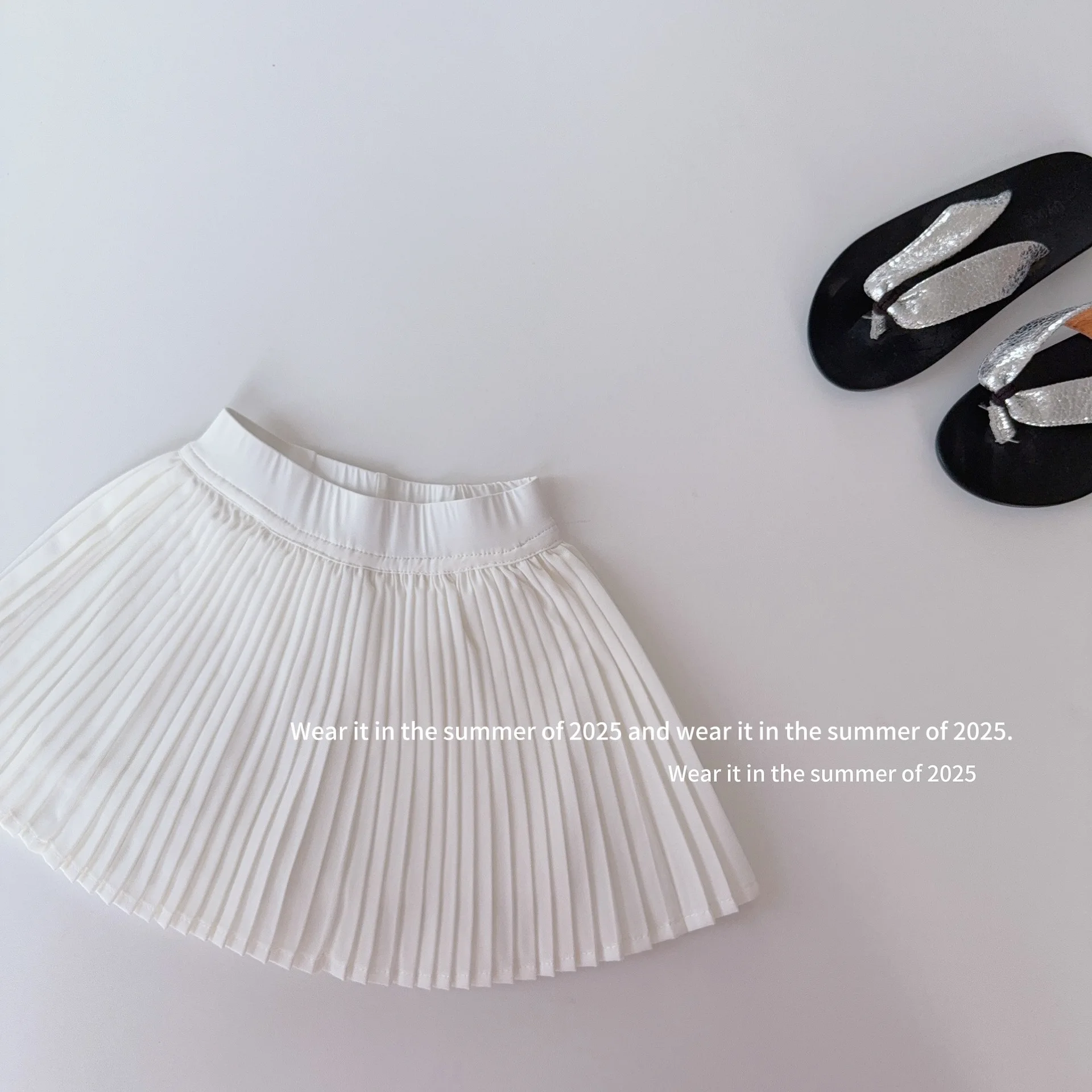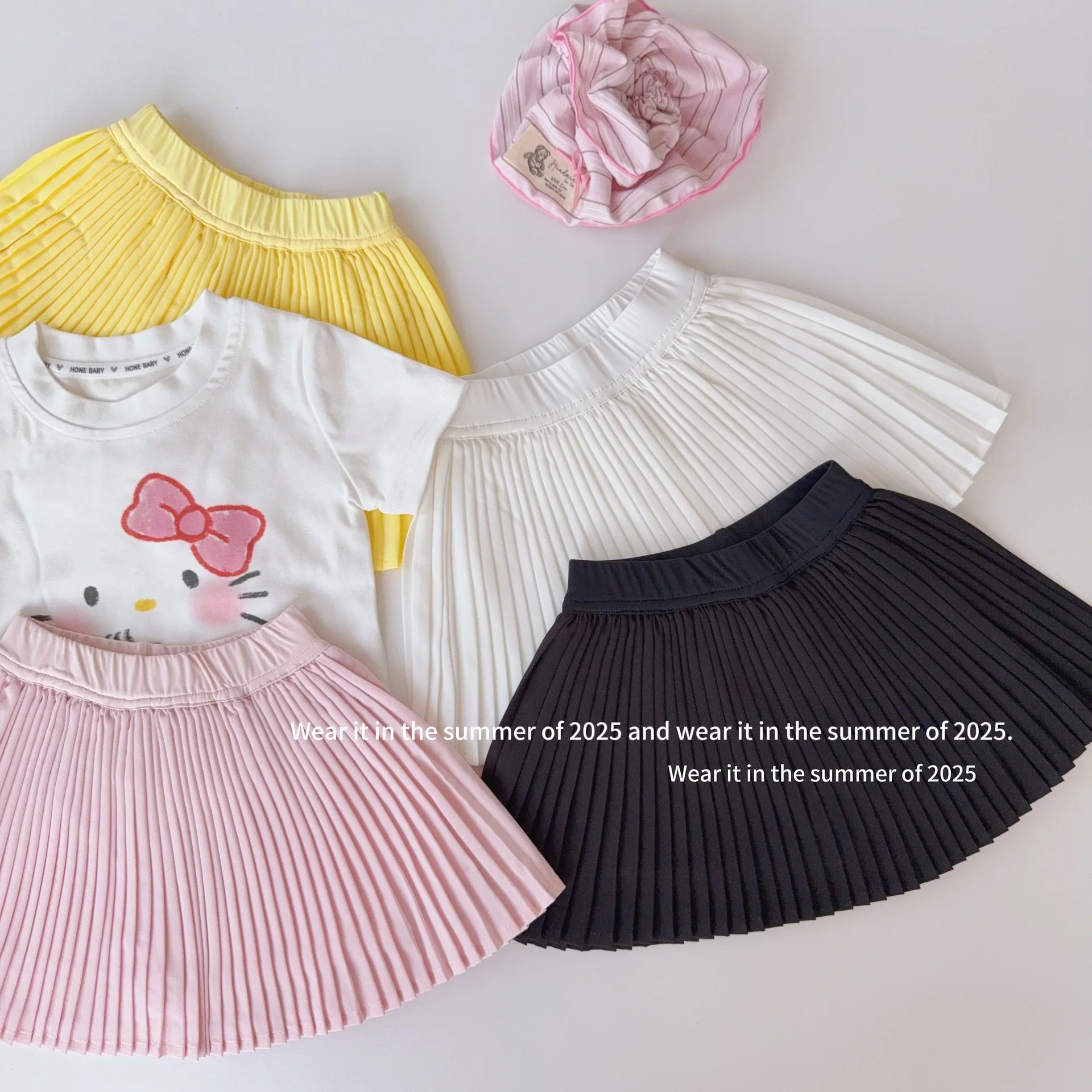 2025 Summer New Sweet Girls Shark Skin Yoga Skirt Kids High Waisted Tennis Skirt Baby Girl Solid Pleated Skirt Children Clothes