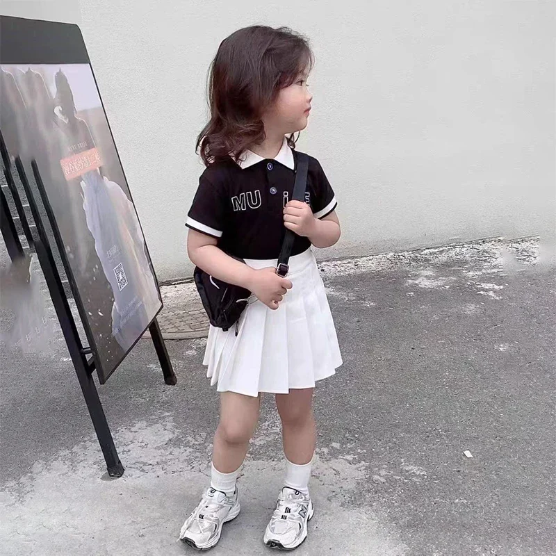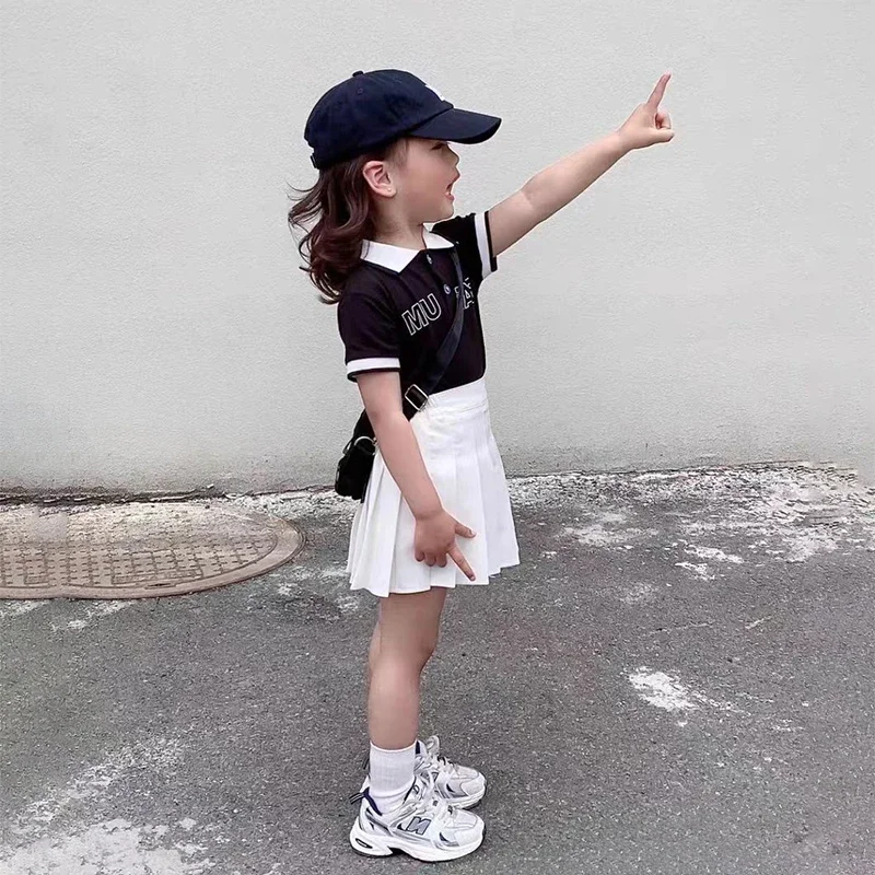 Children's Skirt With Shorts Spring Korea Style Clothes Black A Line High Waist Mini Dress Summer Black Pleated Skirt for Girl