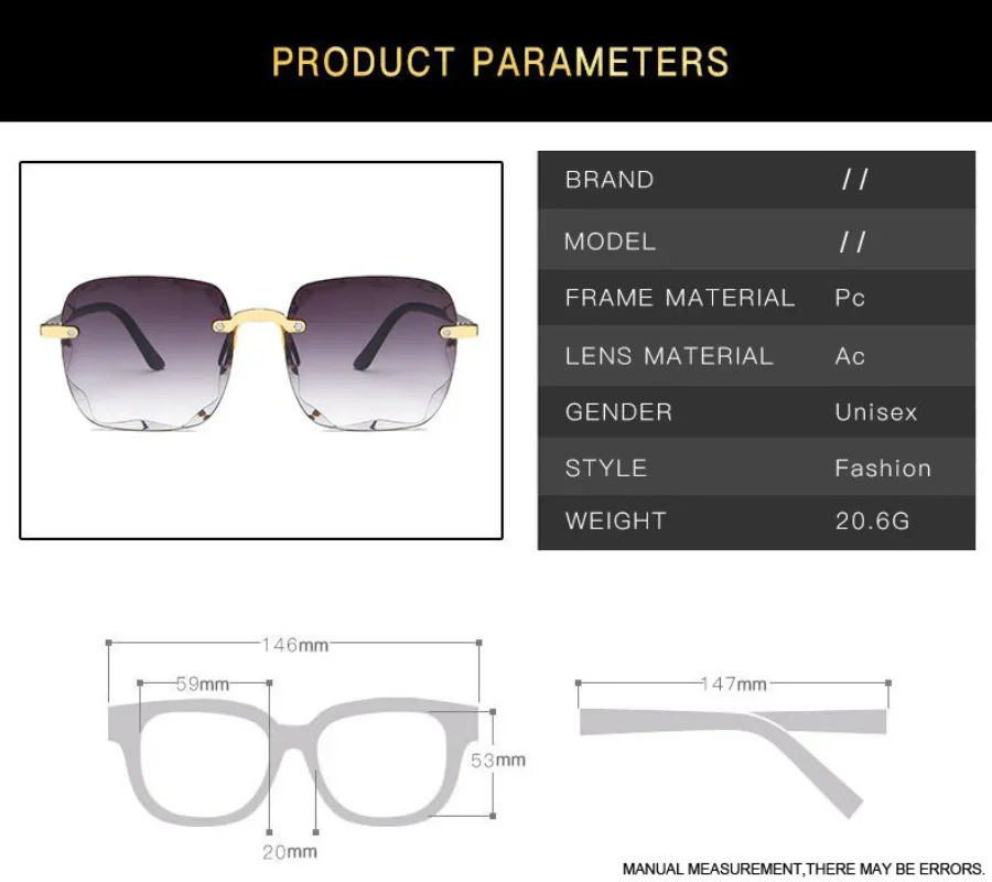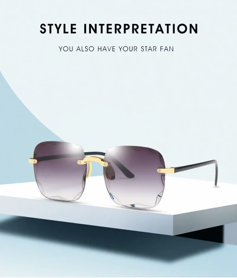 Classic Vintage Square Sunglasses Woman Gradient Mirror Frameless Sun Glasses Female Retro Fashion Rimless Sunglasses