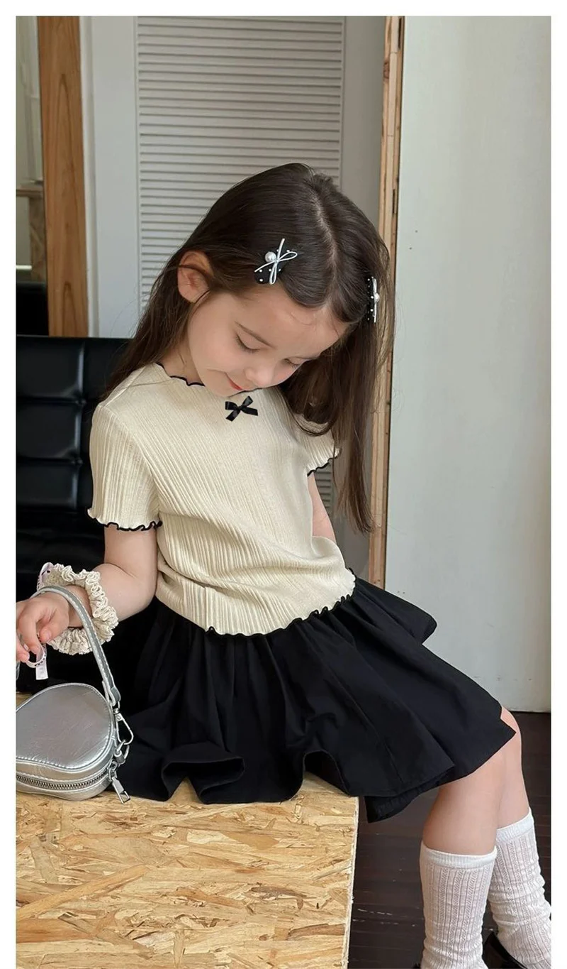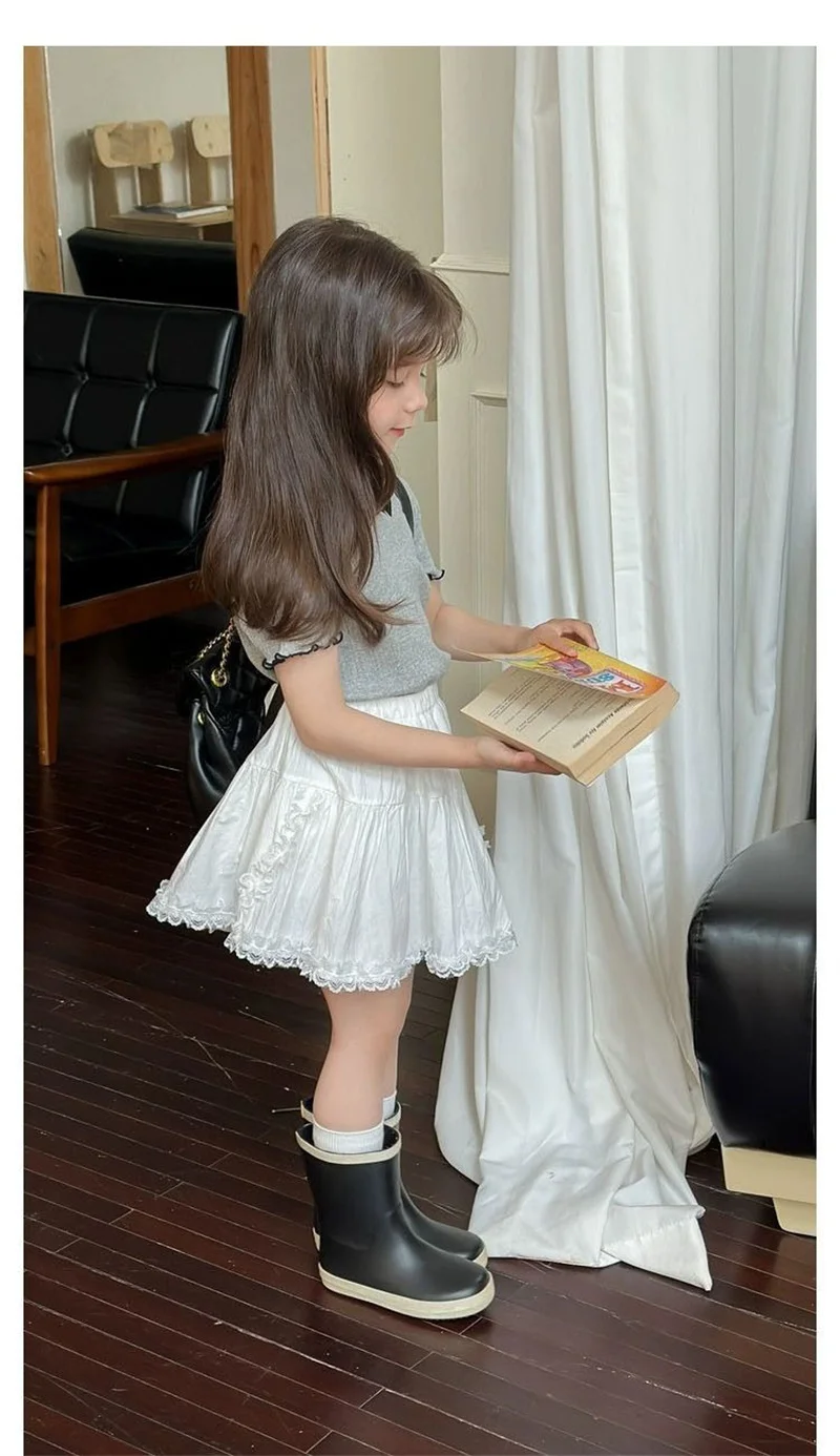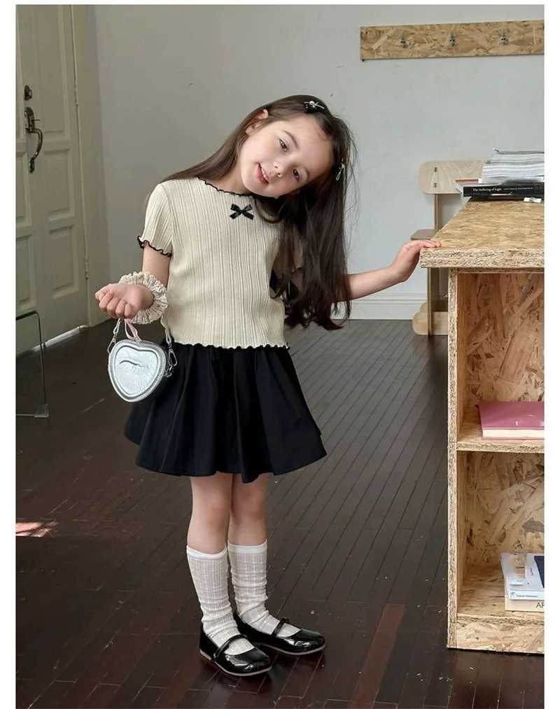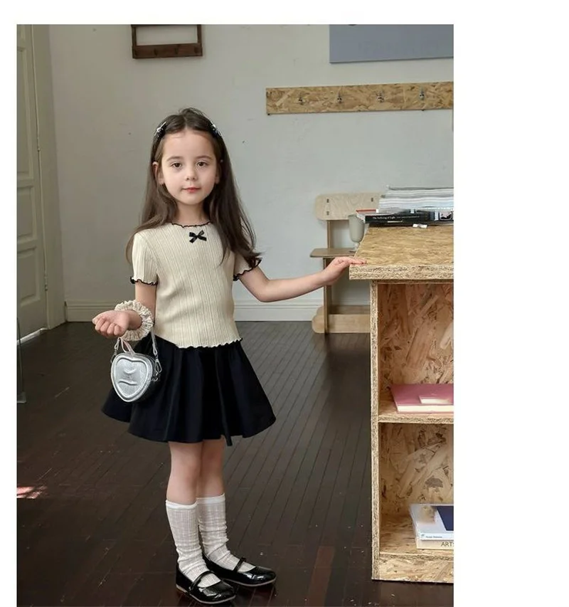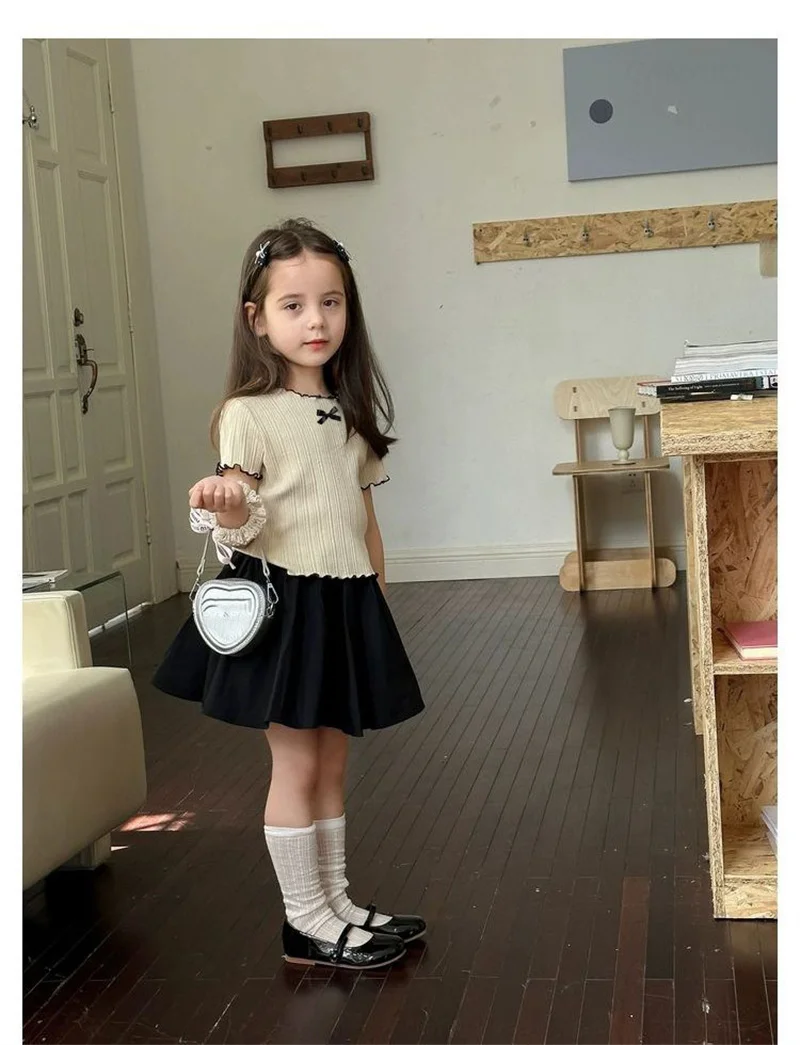 Girl Baby Thin Knit Ruffle Lace Short Sleeve T-shirts 2025 Summer New Girls Kids Bow Tops Sweet Cute Student Children Clothing