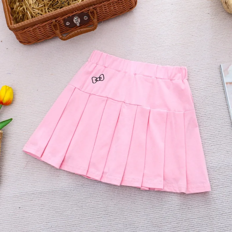 Girls Skirt 2025 New Summer Cute Sweet Solid Outer Wear Casual Simple Pleated Kids Skirt Safety Pants Design 4-10Y