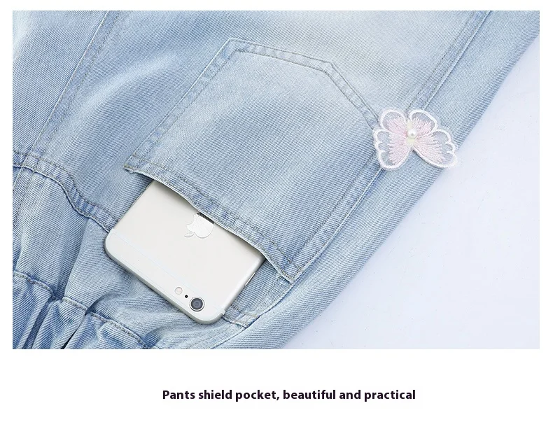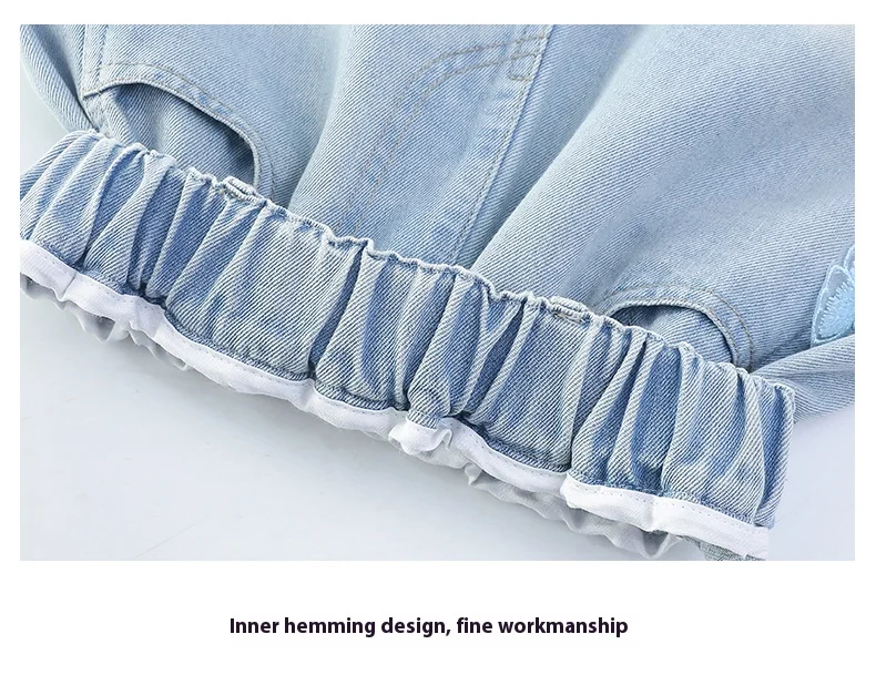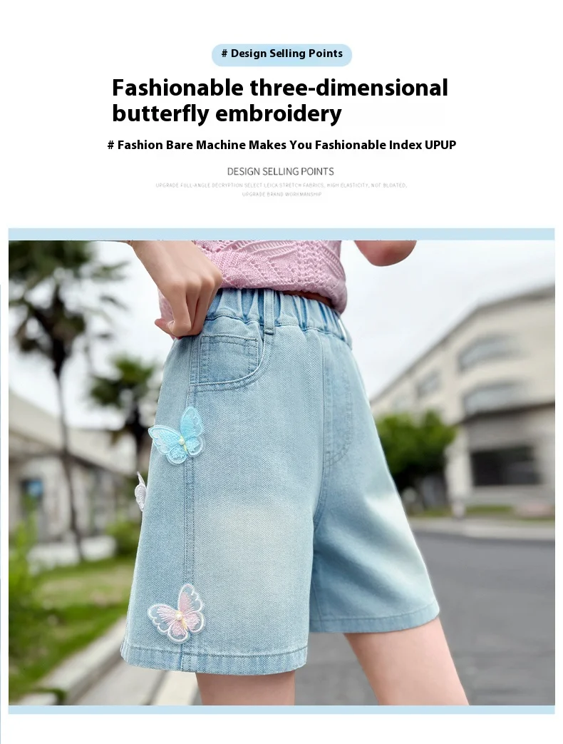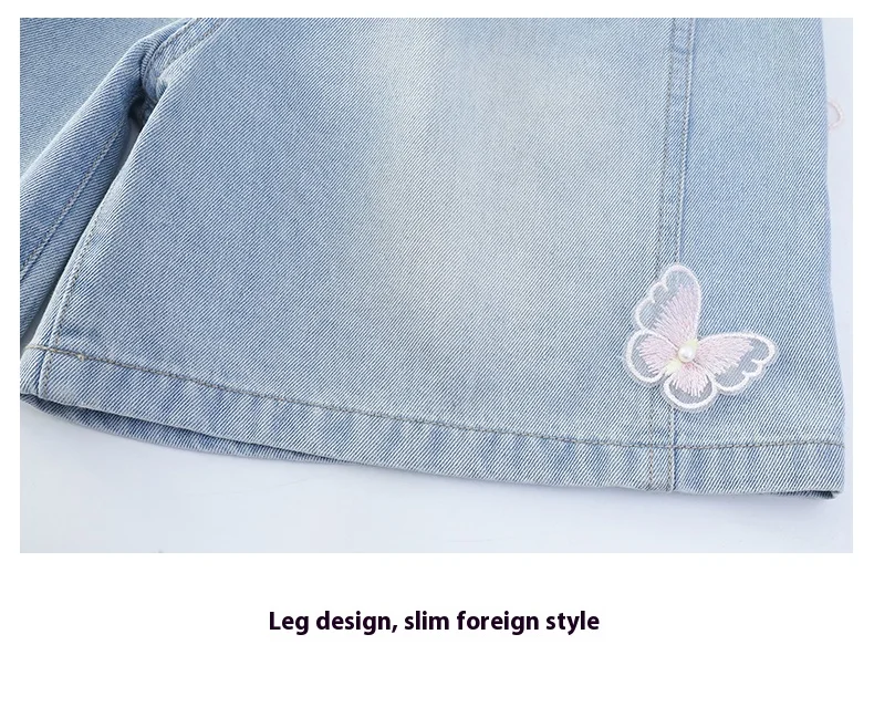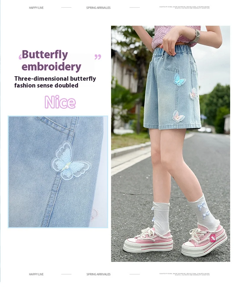 Girls summer style nailed side butterfly denim shorts thin 2025 new fashion denim hot pants casual sports shorts suitable for
