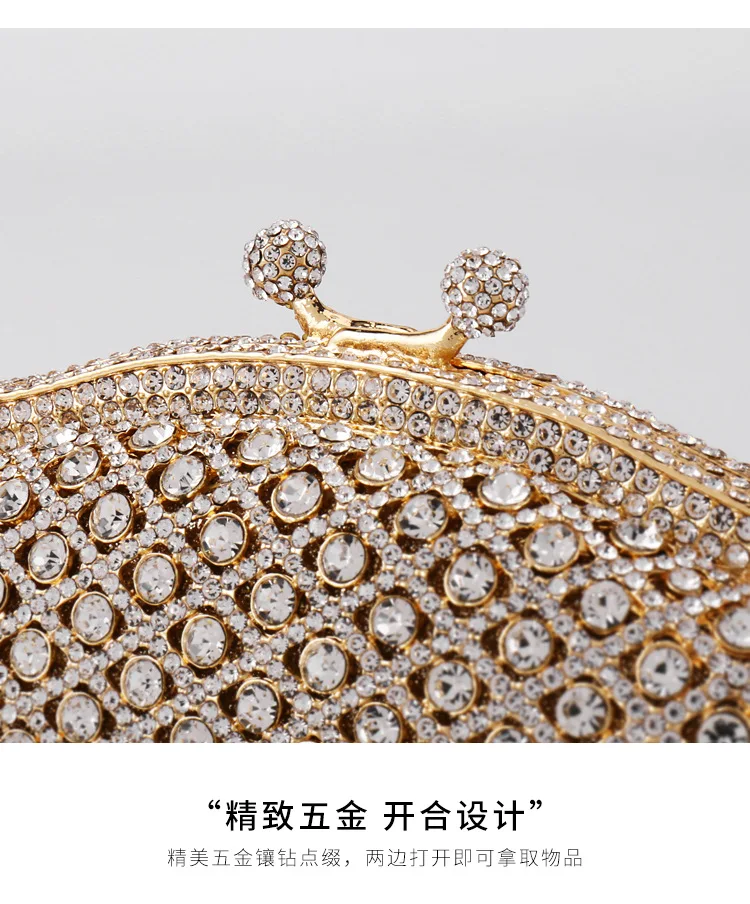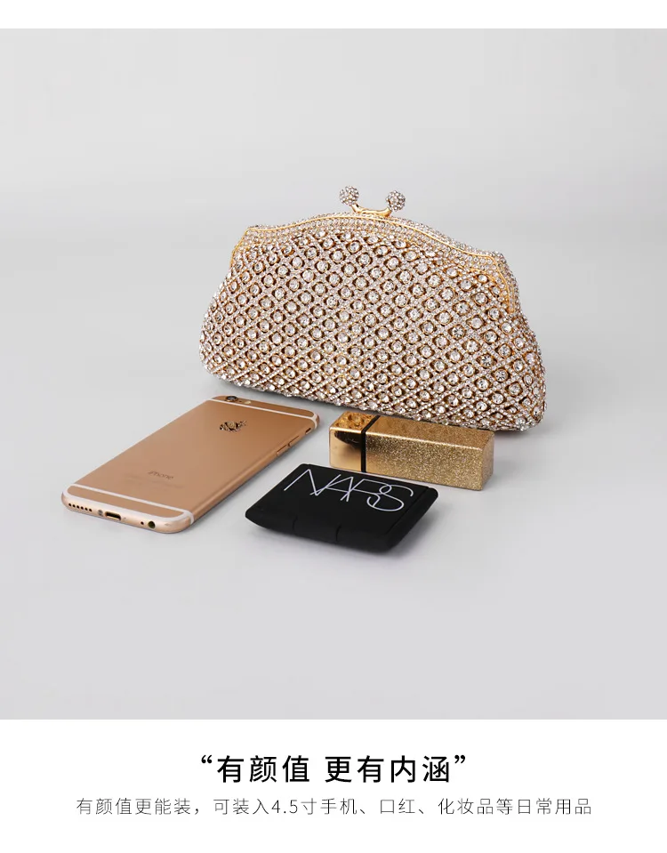 Silver XIYUAN Diamond Woman's Elegant Evening Bag Lady Rhinestone Wedding Banquet Handbag Female Bridal Party Clutch Wallets