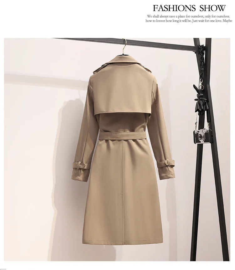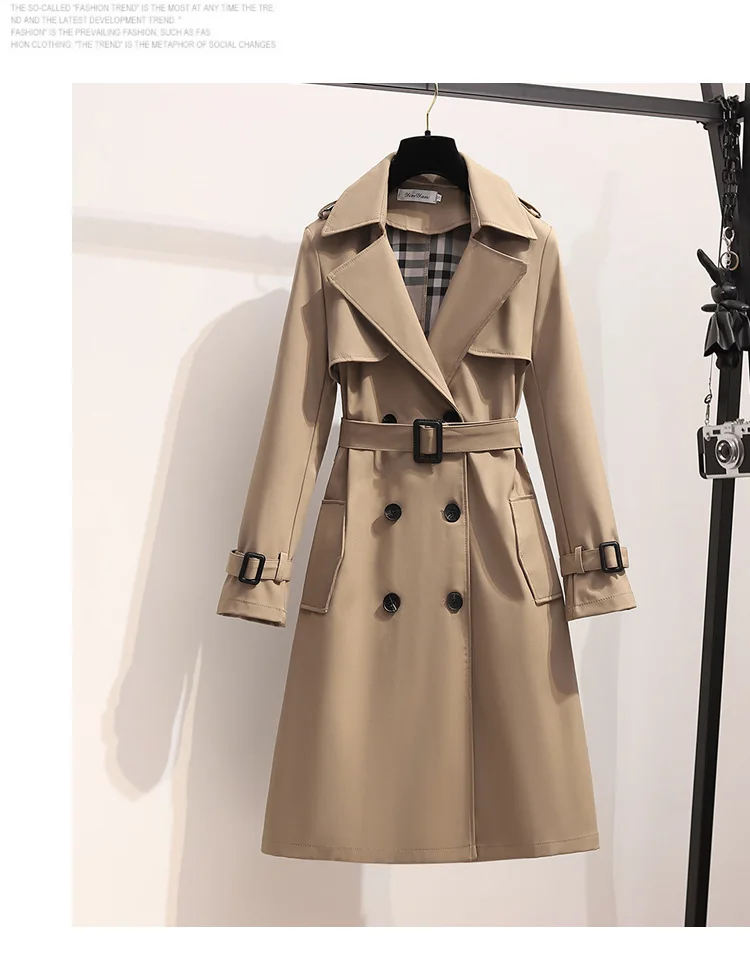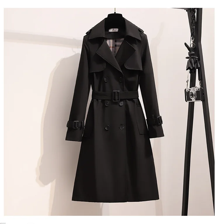 Women Fashion Trench New Coat Spring Autumn Korean Long Sleeve With Belt Jackets Solid British Style Coats Women's Chic Outwear