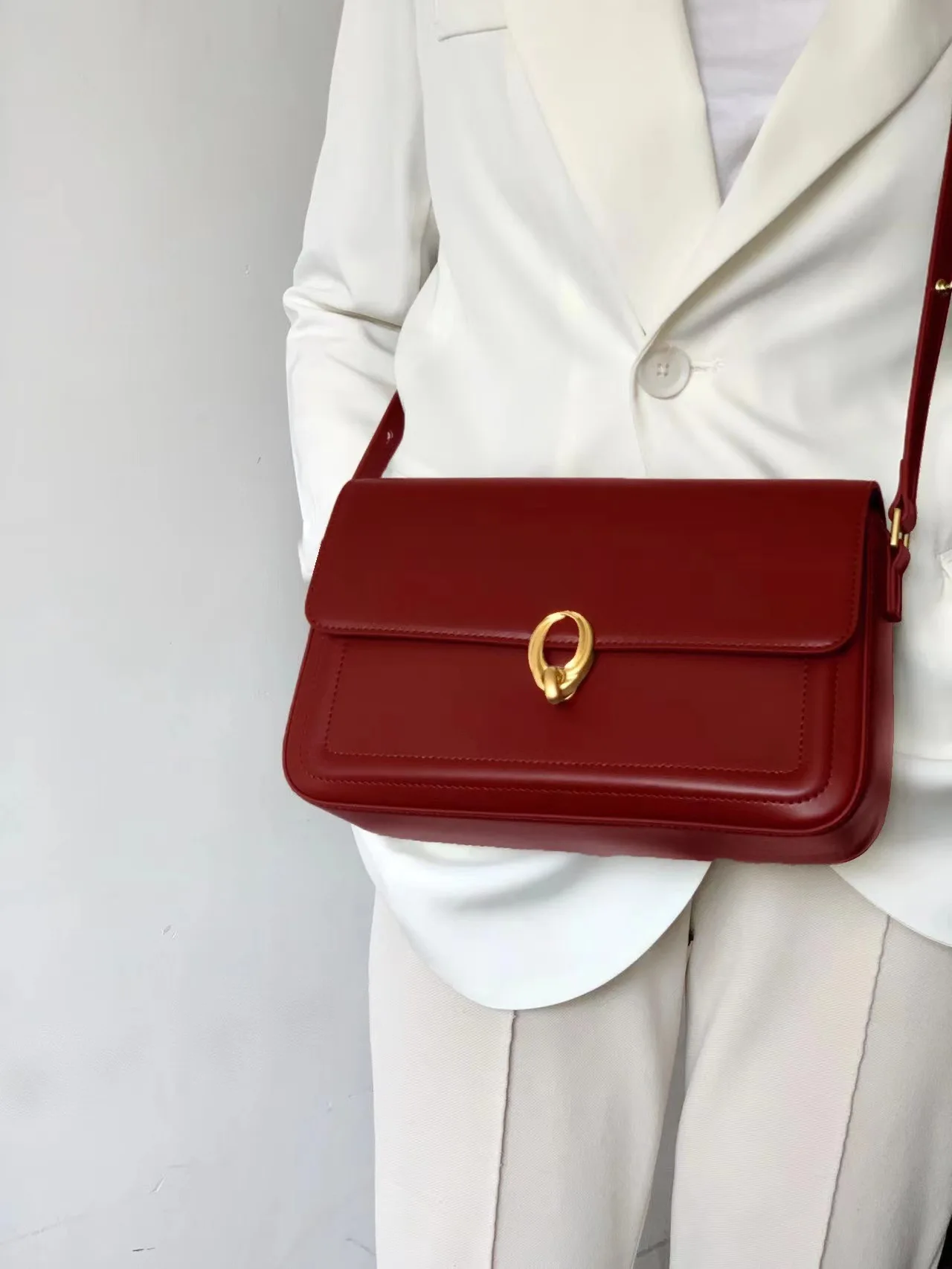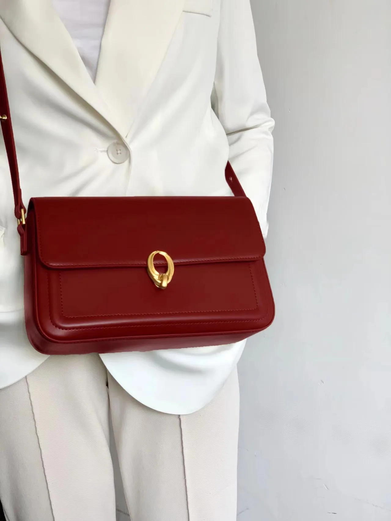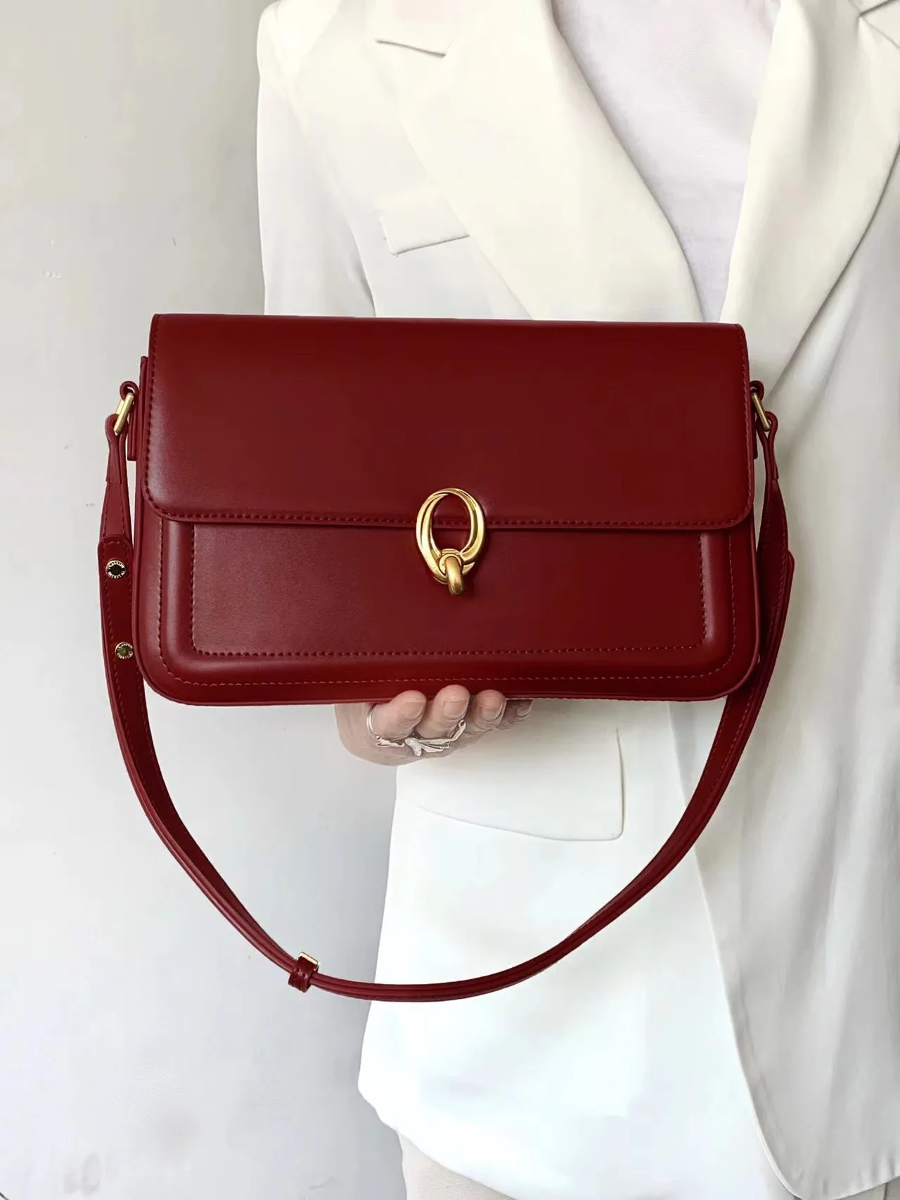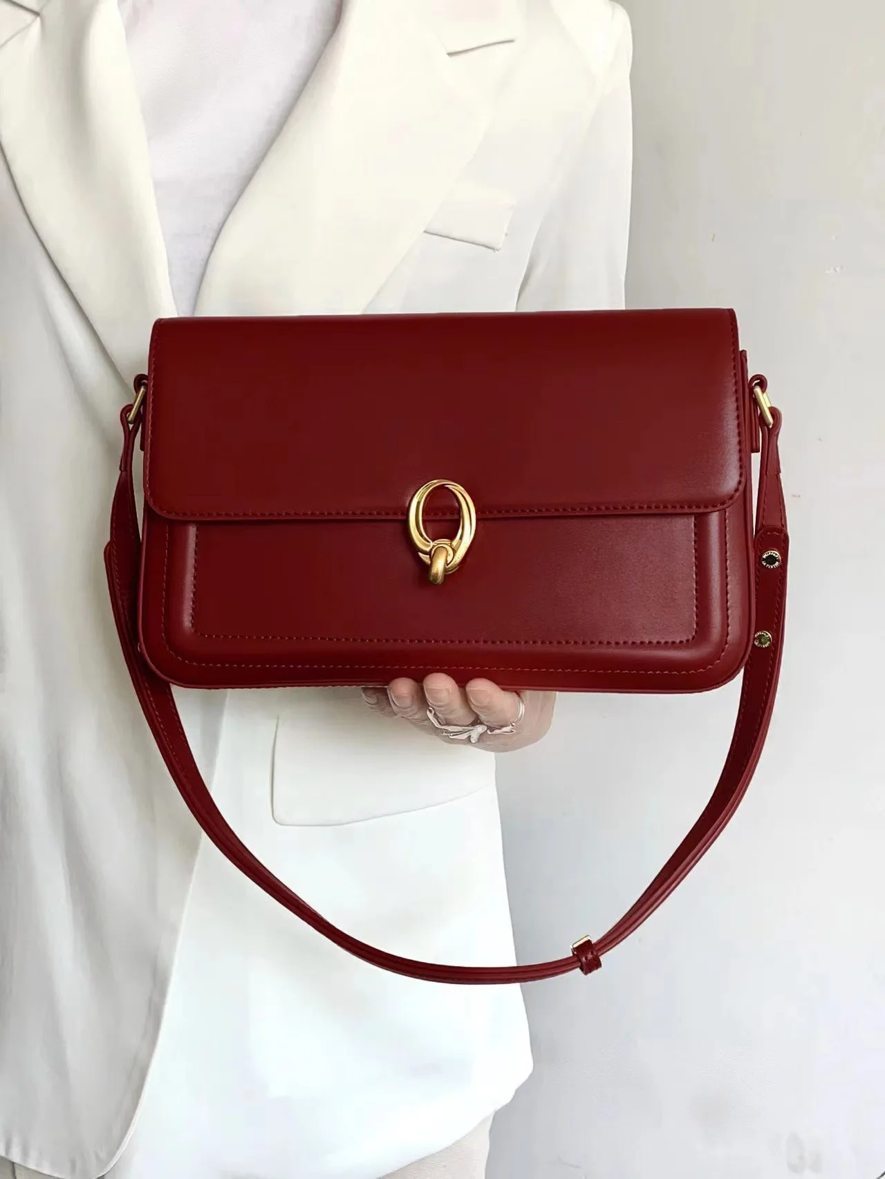 Women Vintage Red Armpit Shoulder Bag PU Simple and Versatile Large Capacity Women's Daily Commuting Crossbody Shoulder Bag Gift