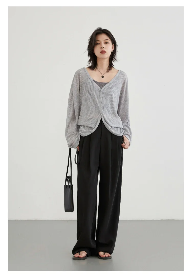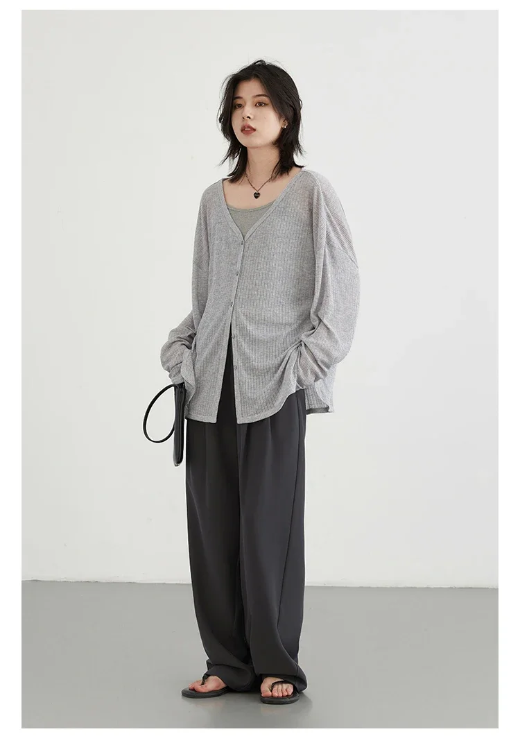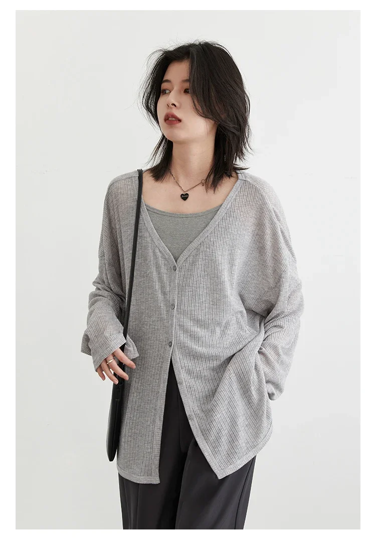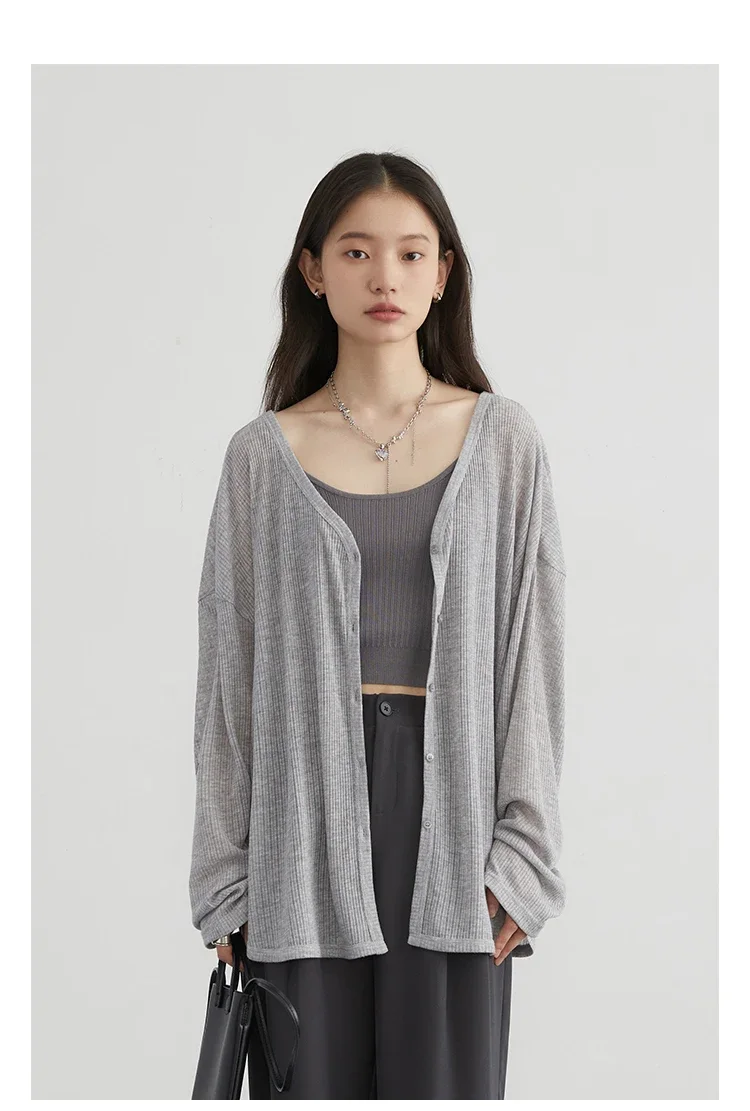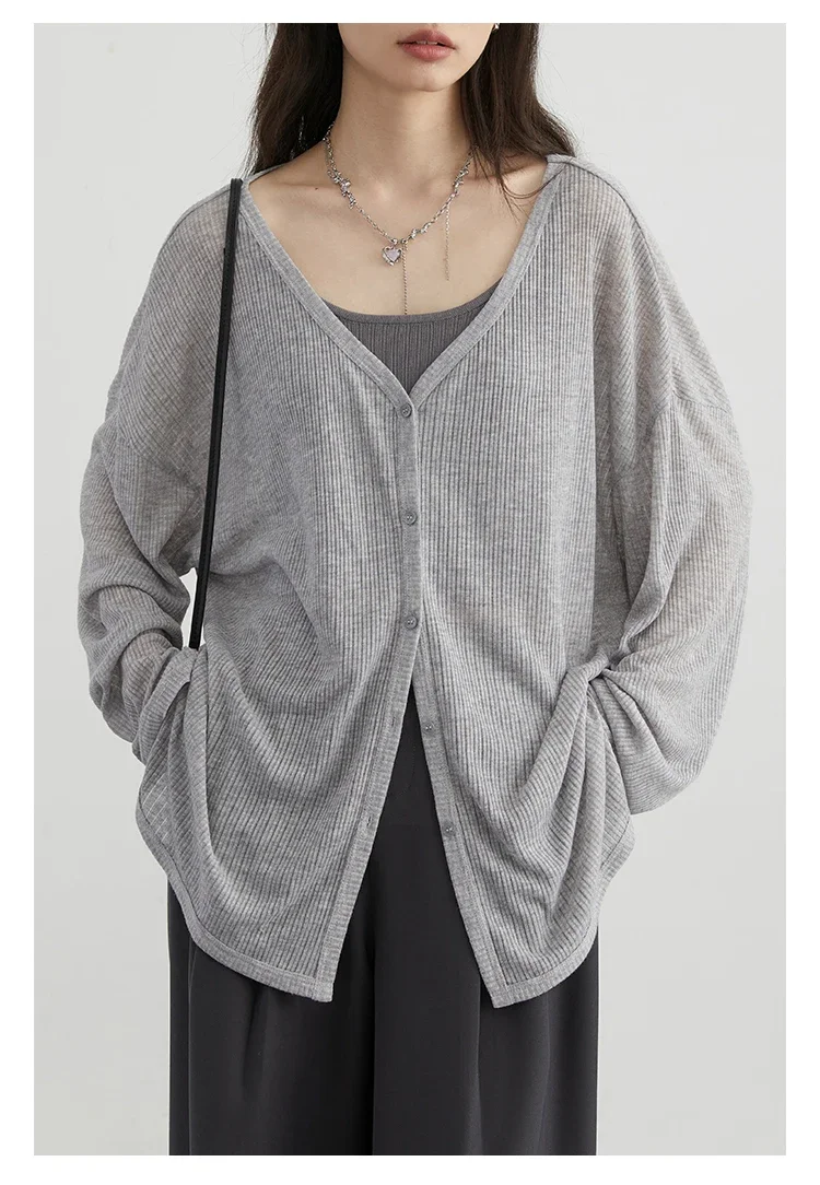 Women's Lightweight V-Neck Long Sleeve Cardigan Top, Sun Protection Spring Summer Autumn Jacket for Casual Daily Outwear